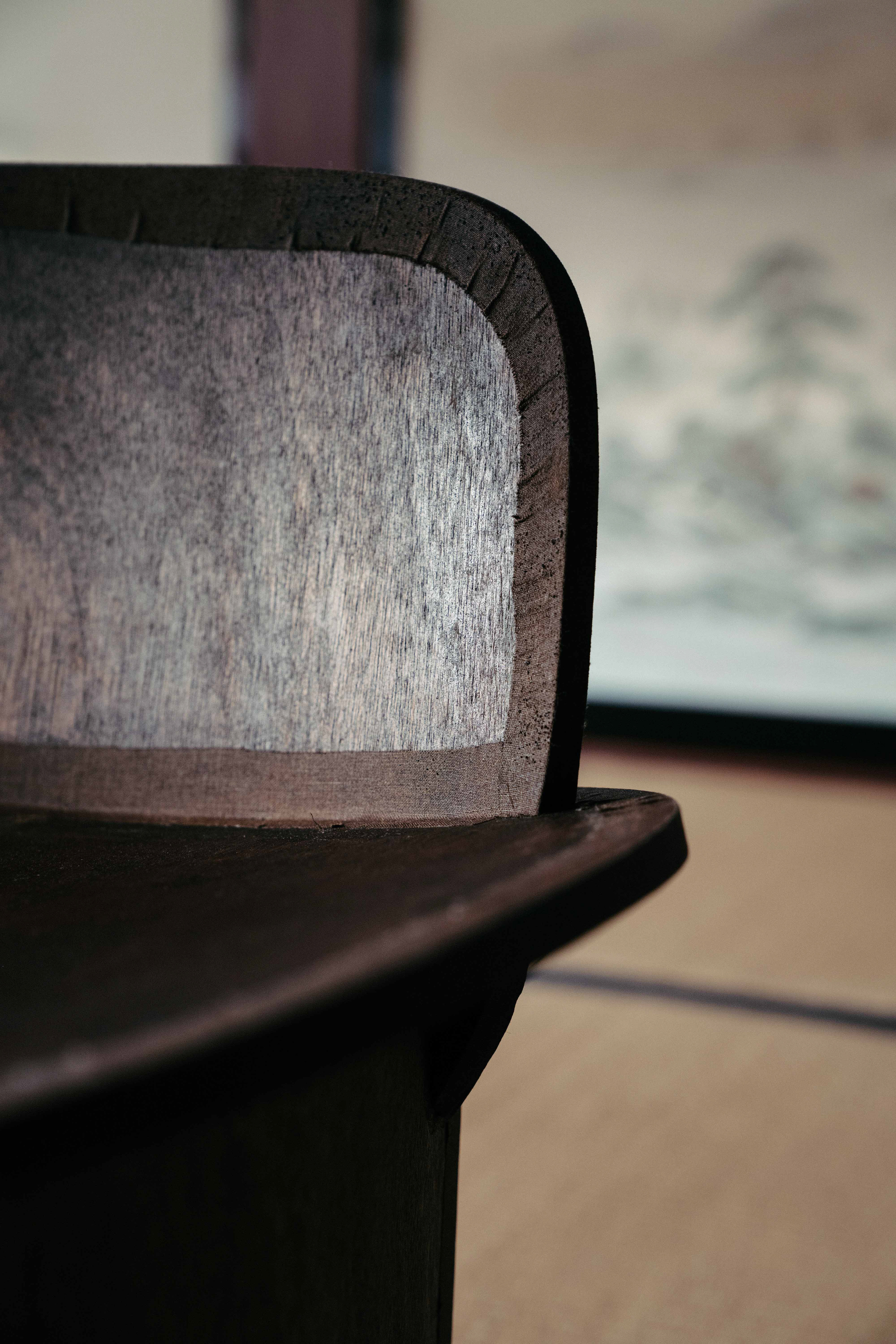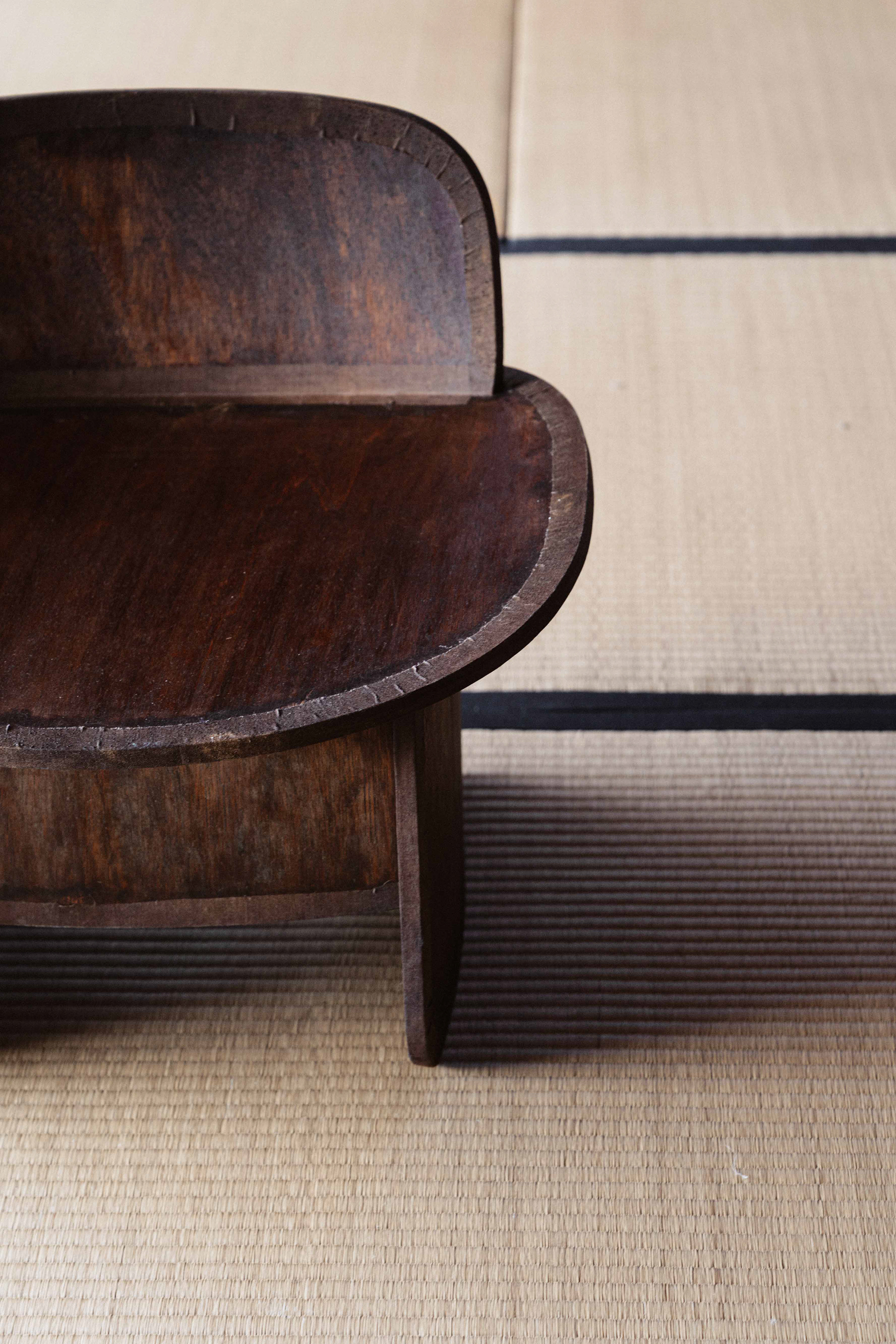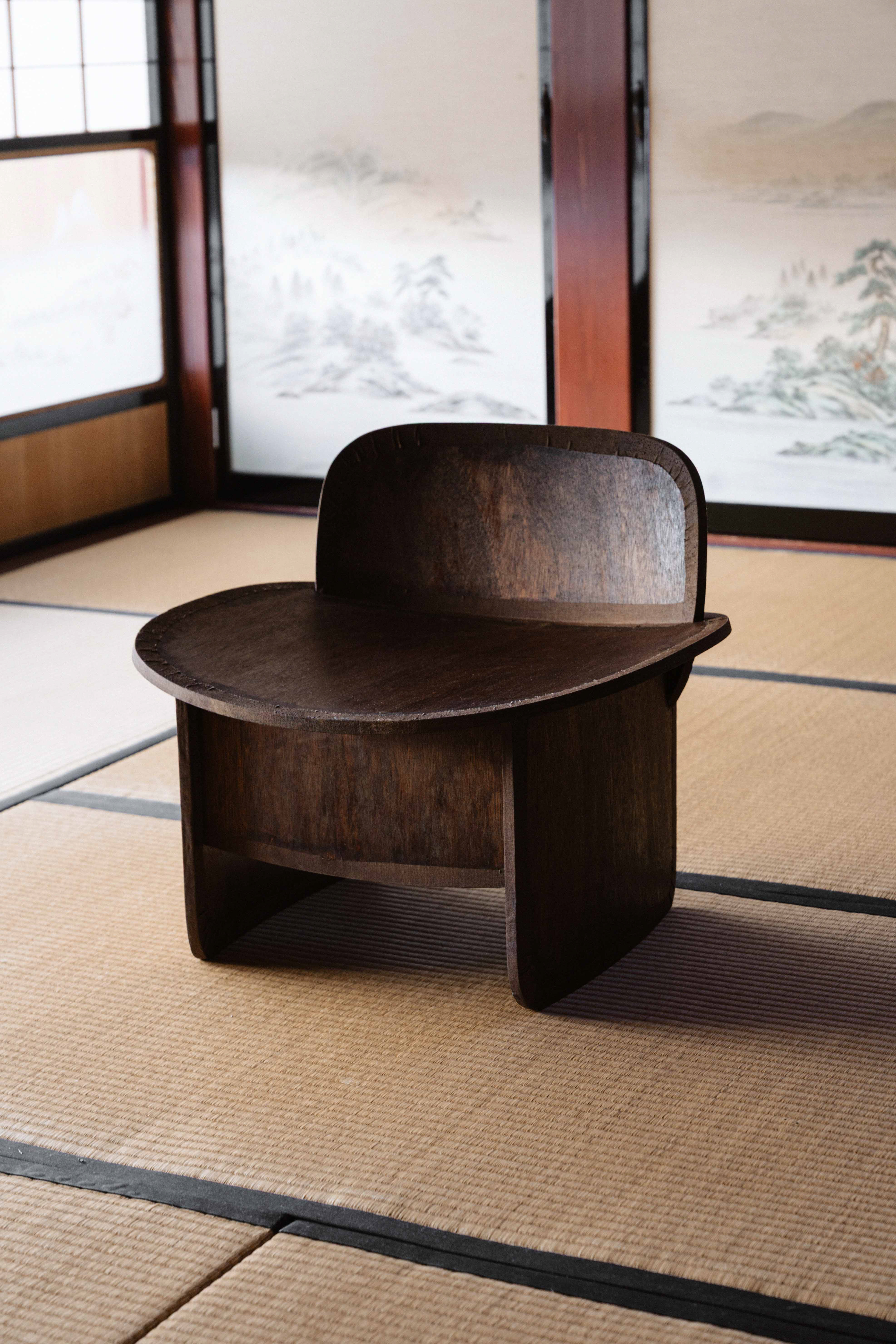 この椅子は私にとって、落ち着くための道具だ。 天井が高くあって欲しいから、座面は低めの方がいい。 どんな椅子に座っても、あぐらができないか試してしまうから、座面は広い方がいい。 座面が丸まっていると、座ることを受け入れてくれるようでいい。 椅子に座る時は、何かに能動的でありたいから、背もたれは倒れすぎない方がいい。 でも、たまの休みに寄りかかれるよう、ちょっぴり広めだといい。 全体的にまるい方が、圧がなくていい。 造形的にしすぎない方が、自由があっていい。 仕上げは漆を塗ってるから、汚れを気にしなくていい。 水がついたとしても、はじいてくれるからいい。 たとえ、塗装になんかあったとしても塗り重ねればいい。 むしろ、漆を塗り重ねていったほうが、手触りがよくなるからいい。 布を着せているから、割れを気にしなくてよいからいい。 布の手触りが滑り止めになるから、持った安心があっていい。 安心は多い方がいい。 凡に座って、凡に過ごす。 置き場所の予定は、いつも居座らせてもらっている和紙工房で。 ものが生まれる特等席。私の平凡。 This chair, to me, is a tool for feeling at ease. I want the ceiling to feel high above me, so the seat should be low. Whatever chair I sit on, I always end up checking if I can sit cross-legged—so the seat should be wide. If the seat curves gently, it feels as though it welcomes me to sit. When I sit on a chair, I want to stay active, so the backrest shouldn’t lean too far back. But it’s nice if it’s a little wide—so I can lean back on my days off. Rounded forms feel softer, less oppressive. It’s better not to make it too sculptural — that way, it has more freedom. The surface is coated with urushi lacquer, so I don’t have to worry about dirt. Even if it gets wet, the water beads up and rolls off. If something happens to the finish, I can simply reapply the lacquer. In fact, layering urushi makes the surface smoother to the touch, which I like. The fabric covering prevents cracks, which is reassuring. Its texture also gives a gentle grip when I hold it, which feels comforting. The more small comforts, the better. I sit in ordinariness, and spend my time in ordinariness. It’s meant to be placed in the washi studio where I always find myself staying a little longer— a special seat in the place where things are born. My ordinary sanctuary. Period : November 2025 Client : self work Design : Ryoya Fukaji Production : Ryoya Fukaji Photo : Rikuo Takata