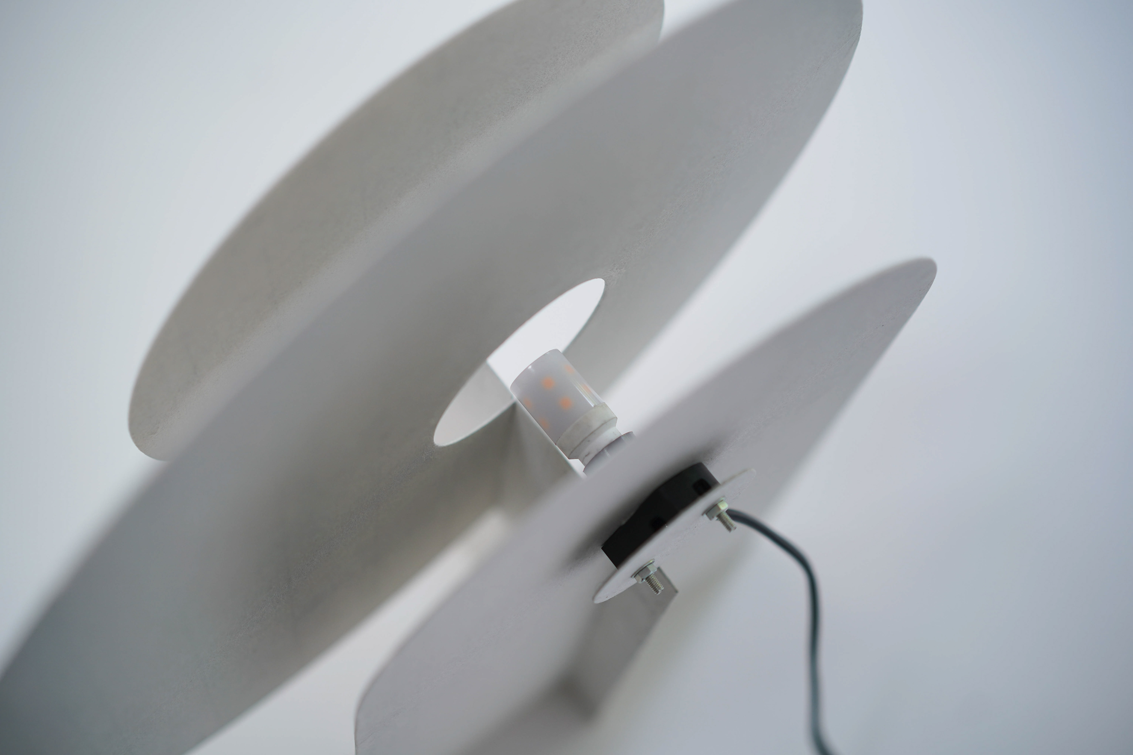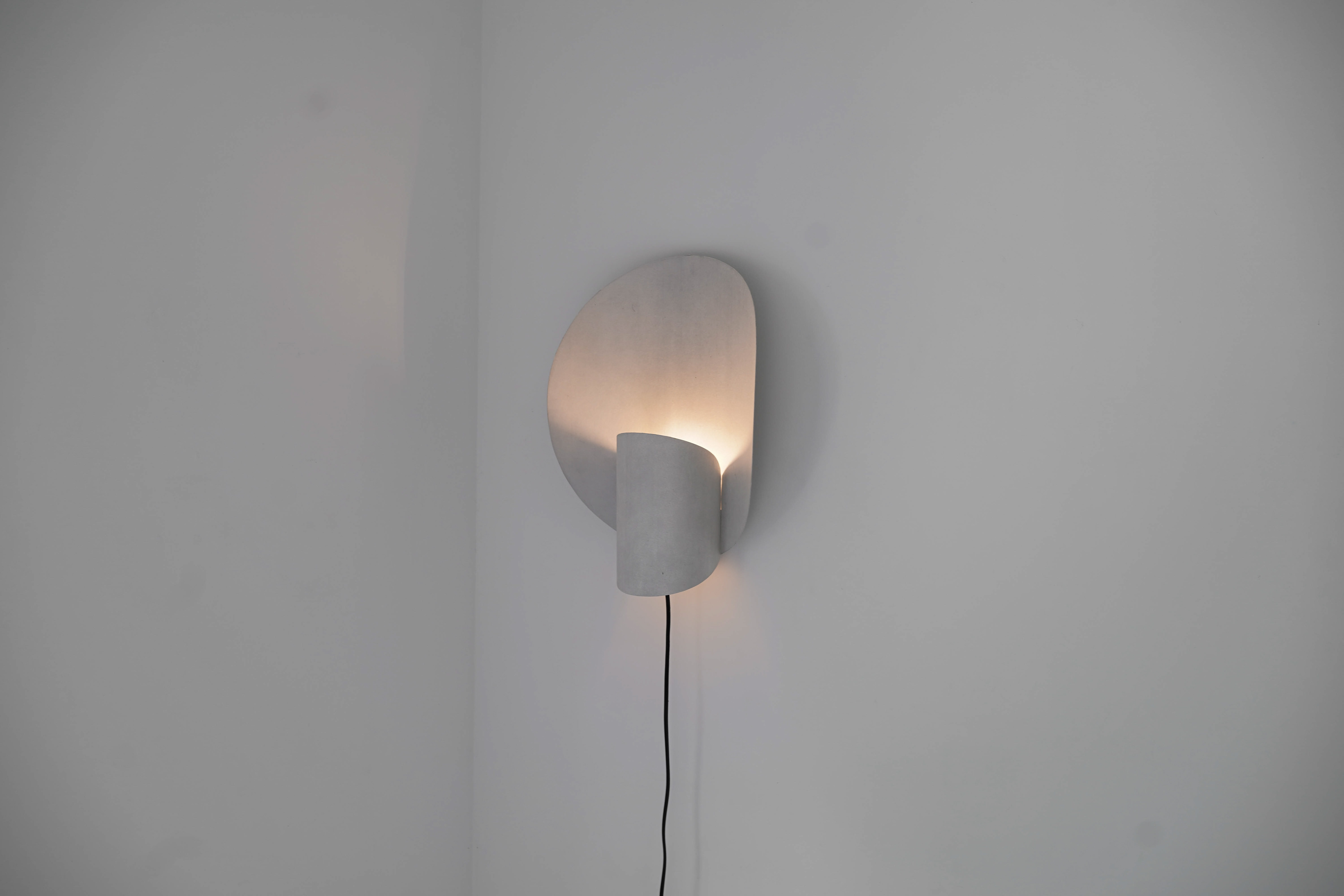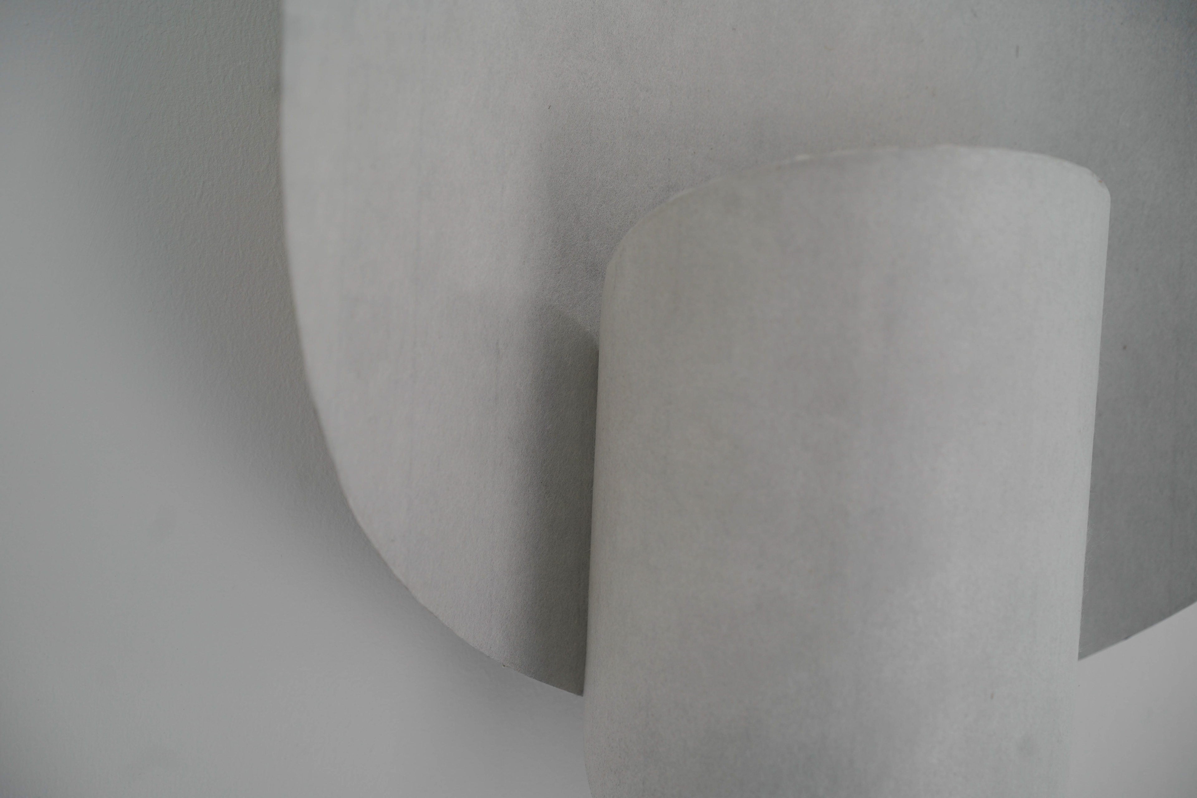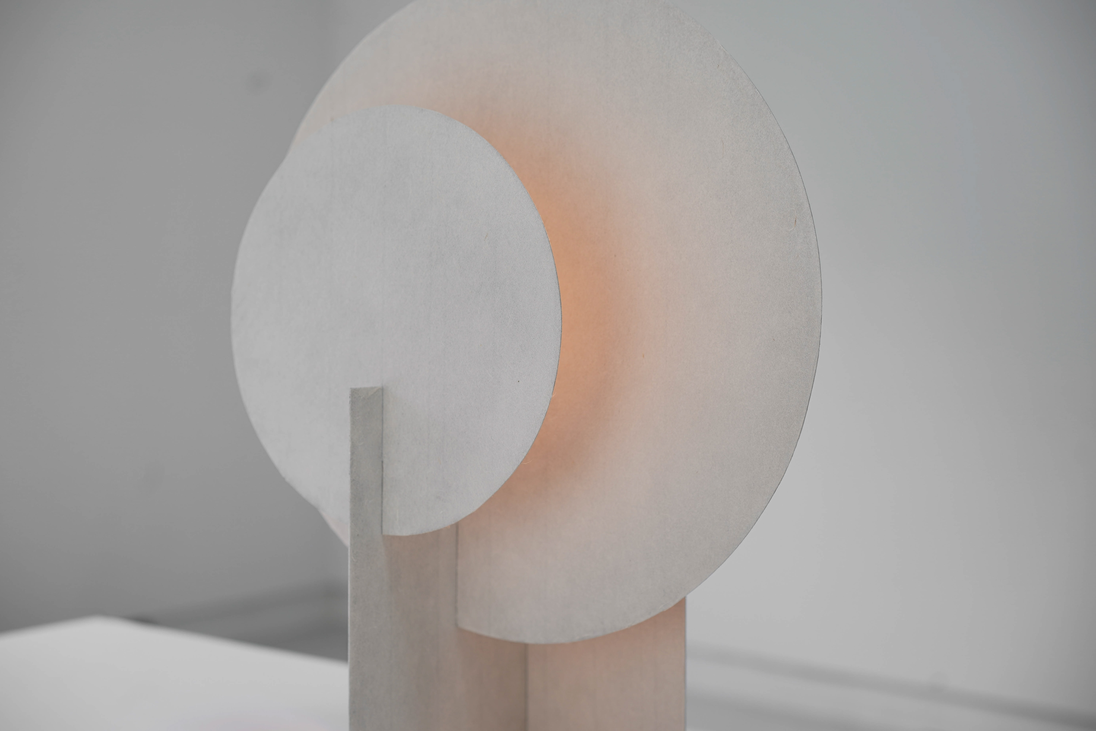 Transflect シリーズは、極めて薄い和紙をアルミ板に貼り込むことで、和紙の柔らかな光の反射や透過性と、アルミの鈍い光沢や高い強度を両立させたプロダクトです。画用紙を鋏で切り抜き、ペーパークラフトのように組み合わせながら、形状を探り、生み出していきました。 The Transflect series is a collection of products created by laminating ultra thin washi paper onto aluminum plates. This unique combination achieves both the soft reflection and translucency of washi and the subdued sheen and high strength of aluminum. Each form was developed through an exploratory process cutting drawing paper with scissors and assembling it like papercraft to discover and refine the shapes. 和紙:卯立の工芸館